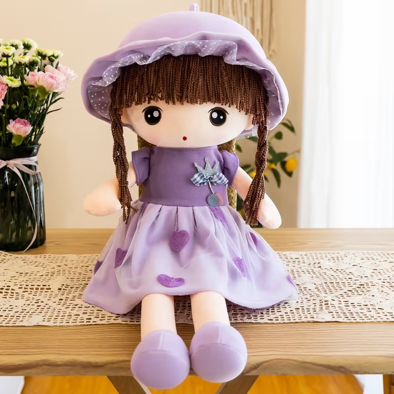 Introducing Stella, the adorable 12-inch plush doll designed to delight your little one! With her sweet curly hair, cozy purple star-print dress, and irresistibly soft fabric, Stella is the perfect first doll for baby girls.